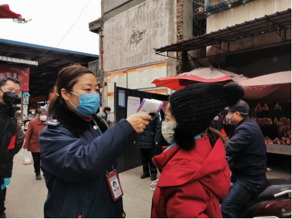 赵镇桔园市场是县城老旧农贸市场,其市场经营,硬件软件设施管理均为老大难。疫情防控期间,县防控工作领导小组重点指定金堂县市场监督管理局全面负责市场防控。临危受命,面对急难重责,面对人少点多,龙淑梅没有推诿,没有退缩,以坚定地信念,全力投入全所的安排部署中。人员调动,合理配置,安排值守,协调出击。同时主动协调局机关、综合执法大队、社区等联防联控。龙淑梅从2月9日起,坚持每天到桔园市场、三星农贸市场进行值守,坚持为进入市场的群众测体温、劝导群众戴口罩、指导商户按规经营。