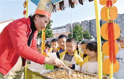 近日,江苏省连云港市东海县第三幼儿园在校园内开展“美食节”活动,老师们制作各种可口食物与幼儿一起平常体验不一样的食育文化。