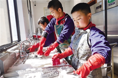 浙江省丽水市景宁畲族自治县红星小学在学校食堂开设劳动体验课,让学生体验学校食堂劳动,从劳动中感悟“盘中餐”的艰辛和不易,树立珍惜粮食的意识,助力“光盘”行动。