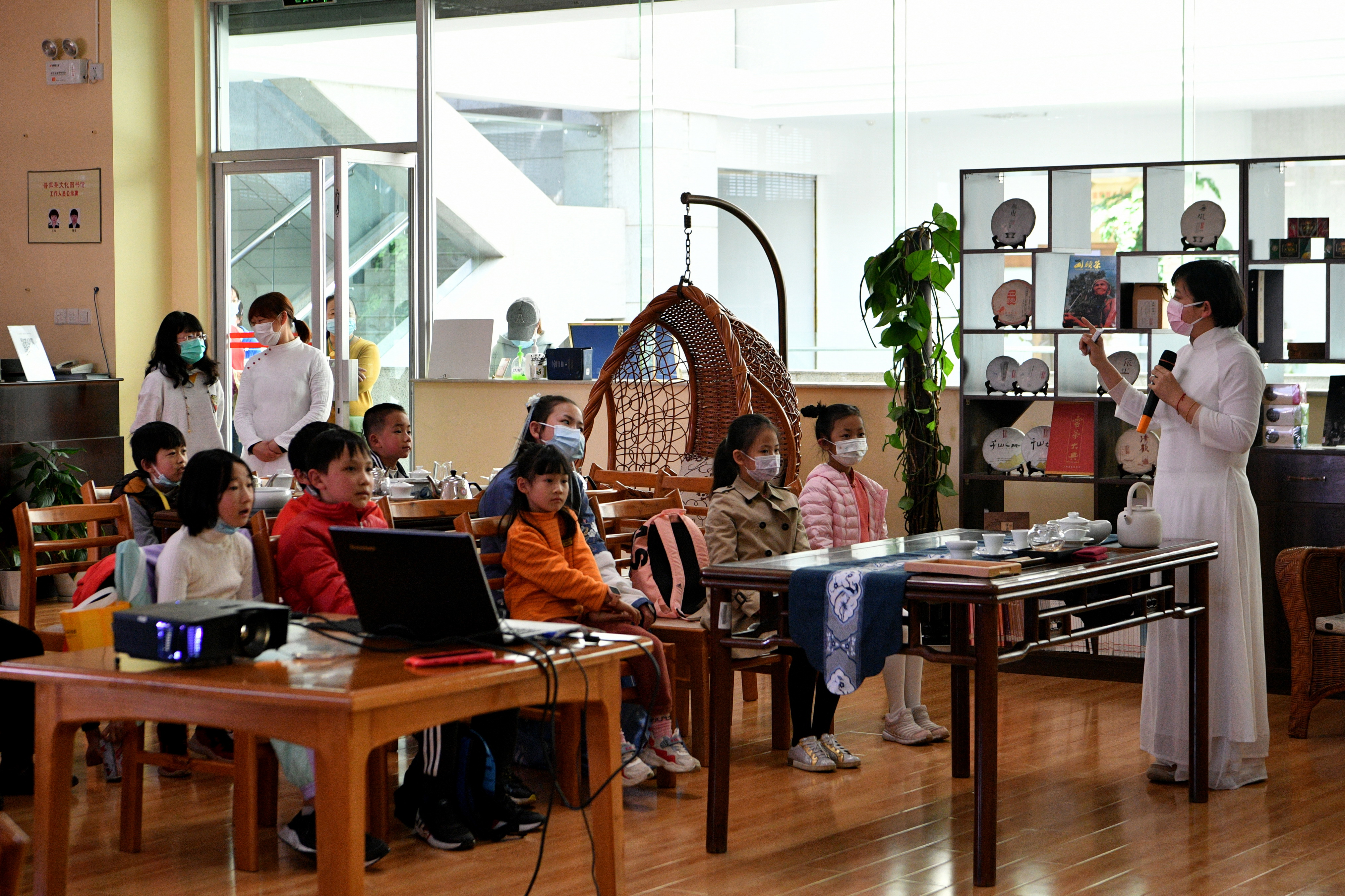 近日,云南省图书馆开设免费茶习班,让孩子们学习了解中国茶文化知识和茶事礼仪。