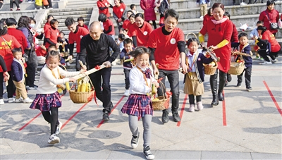 浙江省台州市仙居县迎晖幼儿园在永安溪畔举行“农具新玩法 有趣才够味”第三届民间传统游戏节,以民间游戏为主题,以传统农具为载体,结合亲子迷你马拉松,开展民间游戏活动,让家长和孩子们在体验农耕游戏的同时享受运动的快乐。