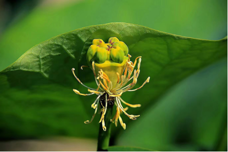 荷塘故事,一株莲蓬上貌似孵化出一窝小鸟 乔健摄
