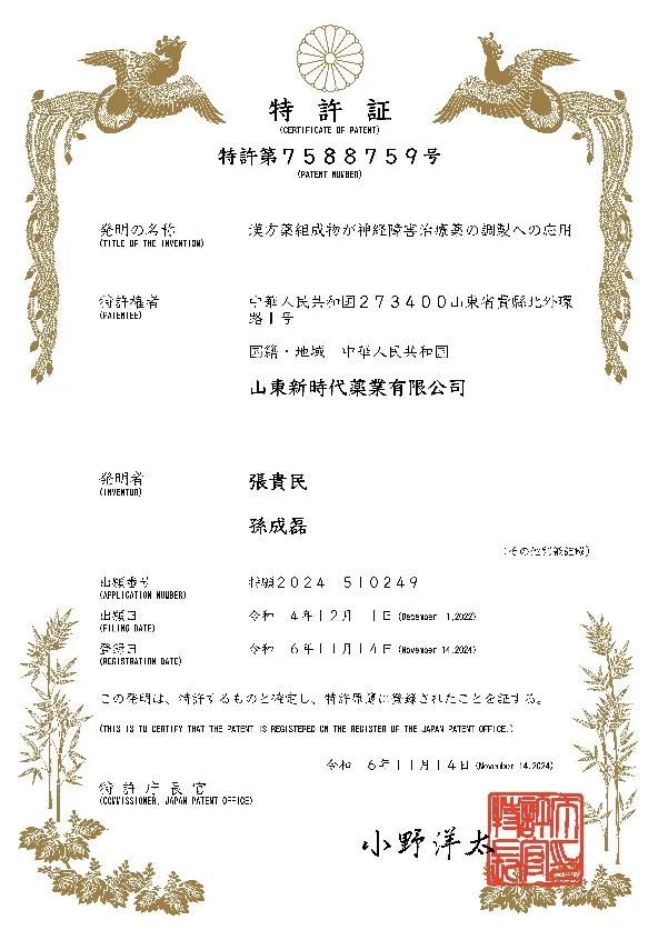 近年来,鲁南制药集团持续加大研发投入,坚持中药现代化与国际化“双轮驱动”,积极与多家科研机构开展合作,深化中药循证医学研究。此次专利授权,将进一步增强中国中药企业在国际市场上的话语权,助力中医药从“文化输出”向“技术标准输出”升级。