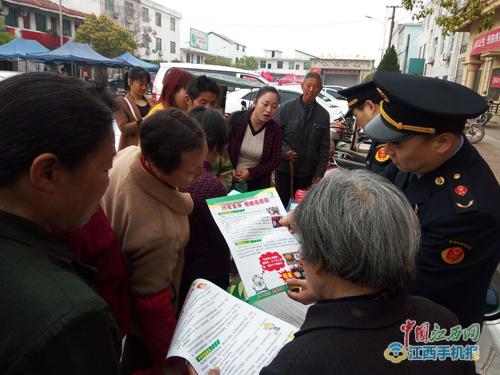 新余市高新区市场和质量监管局在马洪办事处农贸市场旁宣传防控野生毒蘑菇