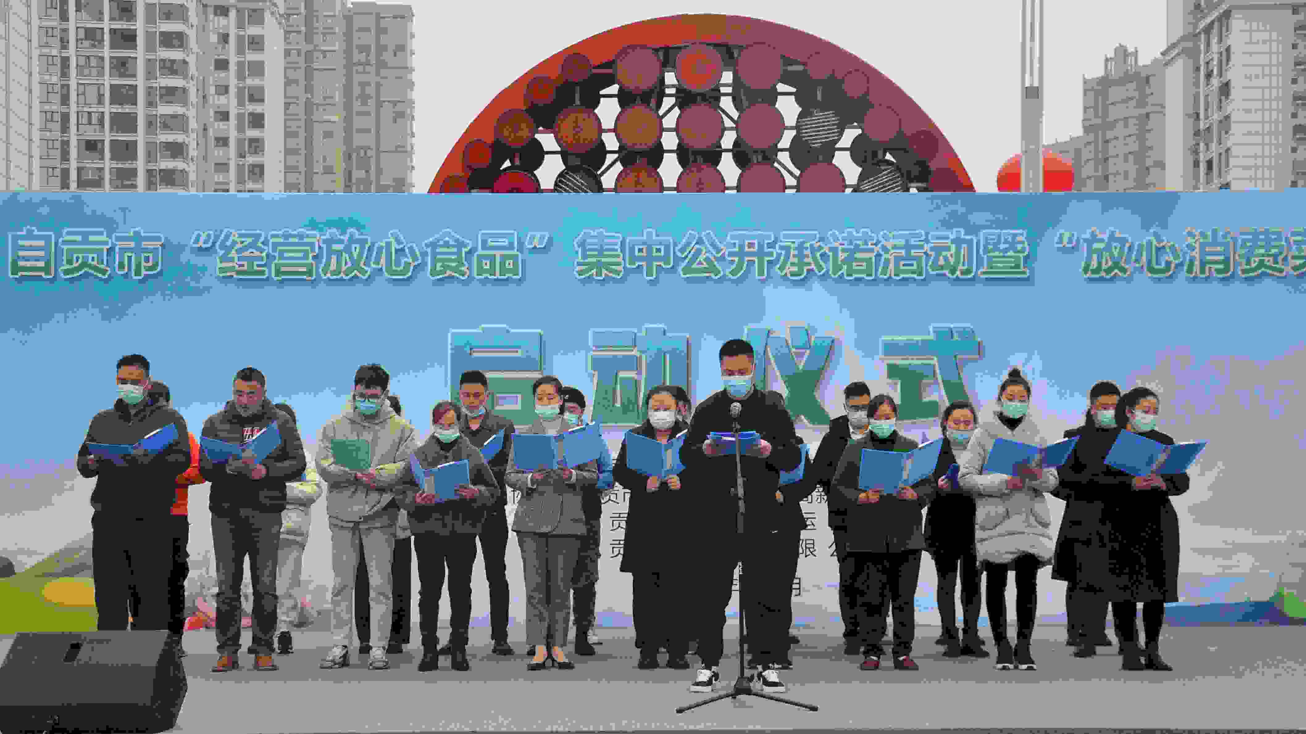 中国食品安全网讯(向钰)12月3日下午,自贡市市场监管局在自贡市华商·爱琴海鲸鱼广场举行了“经营放心食品”集中公开承诺活动暨“放心消费菜单”启动仪式。自贡市部分食品经营企业、餐饮经营店代表在仪式上向社会、向消费者进行了公开承诺,纷纷表示“将严格遵守《中华人民共和国食品安全法》等法律法规要求,严格履行食品安全主体责任,自觉接受社会监督,不做虚假宣传,守法诚信经营,保证食品安全。要率先行动,加强食品安全管理制度建设,强化食品安全保障,提升服务质量,严格落实禁售野生动物和长江野味、制止餐饮浪费以及疫情防控等有关要求。”