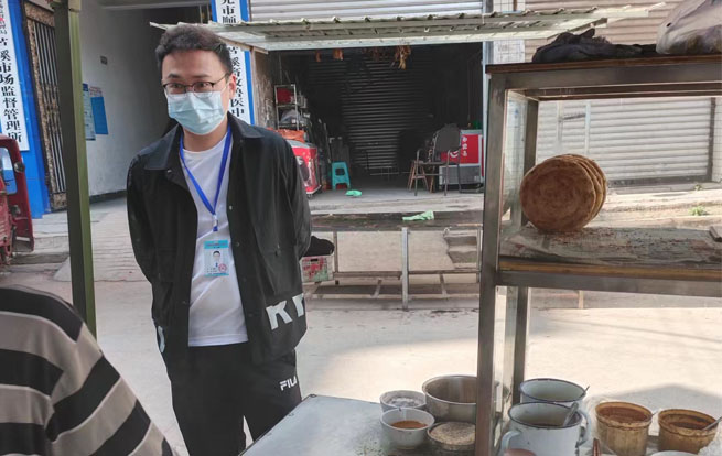 工作人员随即向大爷提出了责令整改,要求大爷在存放锅盔的地方不能用报纸或白纸,最好用小竹篮、小竹筐存放,这样不会对食品造成污染,有利于环保与卫生的清理清洗。大爷表示自己文化不高,缺乏食品安全知识,接下来要多学习,对存在的问题一定尽快落实整改到位,并表示一定接受工作人员提出的整改意见,同时也希望工作人员今后多多普及食品安全常识与《食品安全法》,自己一定要做出让消费者吃着放心、卫生健康、安全满意的特色小吃。