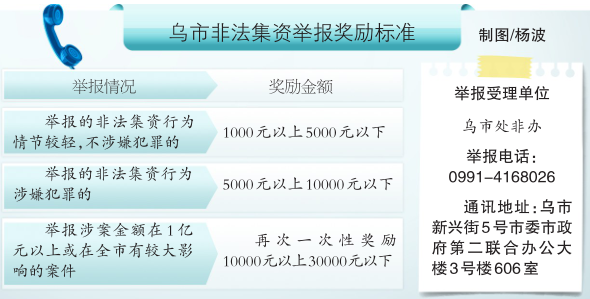 近日,乌鲁木齐市金融工作领导小组办公室印发了《乌鲁木齐市非法集资举报奖励实施细则》(以下简称“实施细则”),鼓励广大群众积极参与防范和打击非法集资工作,及时发现并举报非法集资线索。