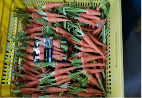 胡萝卜可采用保鲜膜、托盘+保鲜膜、保鲜袋、网袋、保鲜盒等包装方式,可根据销售渠道选择适宜包装方式。为提高包装效果,胡萝卜包装前可用清水清洗。迷你胡萝卜可作为休闲食品销售,可把加工型胡萝卜用机械加工成迷你胡萝卜,加工型胡萝卜比迷你胡萝卜单产高,可大幅提高种植经济效益,满足社会对高品质胡萝卜的需要,并能提高商品附加值。胡萝卜除作为蔬菜外,还可加工成胡萝卜汁、胡萝卜粉、方便食品调料等,提升产品附加值。
