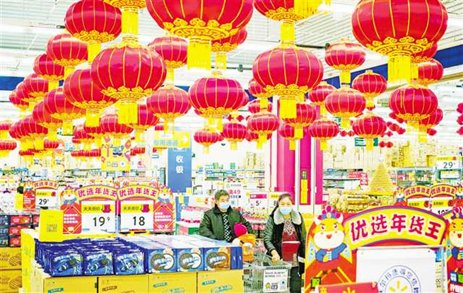 十二月二十八日,市民在位于沙坪坝的沃尔玛超市凤天路店选购商品。临近元旦和春节,重庆各商场、超市的各类年货商品琳琅满目。特约摄影 孙凯芳\视觉重庆
