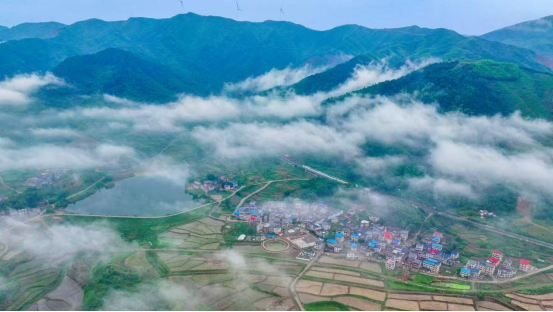 沿着新修建的登山步道拾级而上,两旁树木苍翠,鸟语花香,站在山顶观景平台远眺,整个山口村尽收眼底。