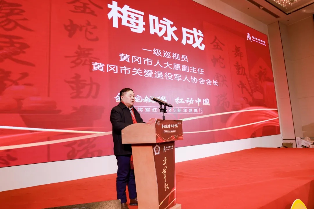 一级巡视员、黄冈市人大常委会原副主任、黄冈市关爱退役军人协会会长梅咏成讲话。