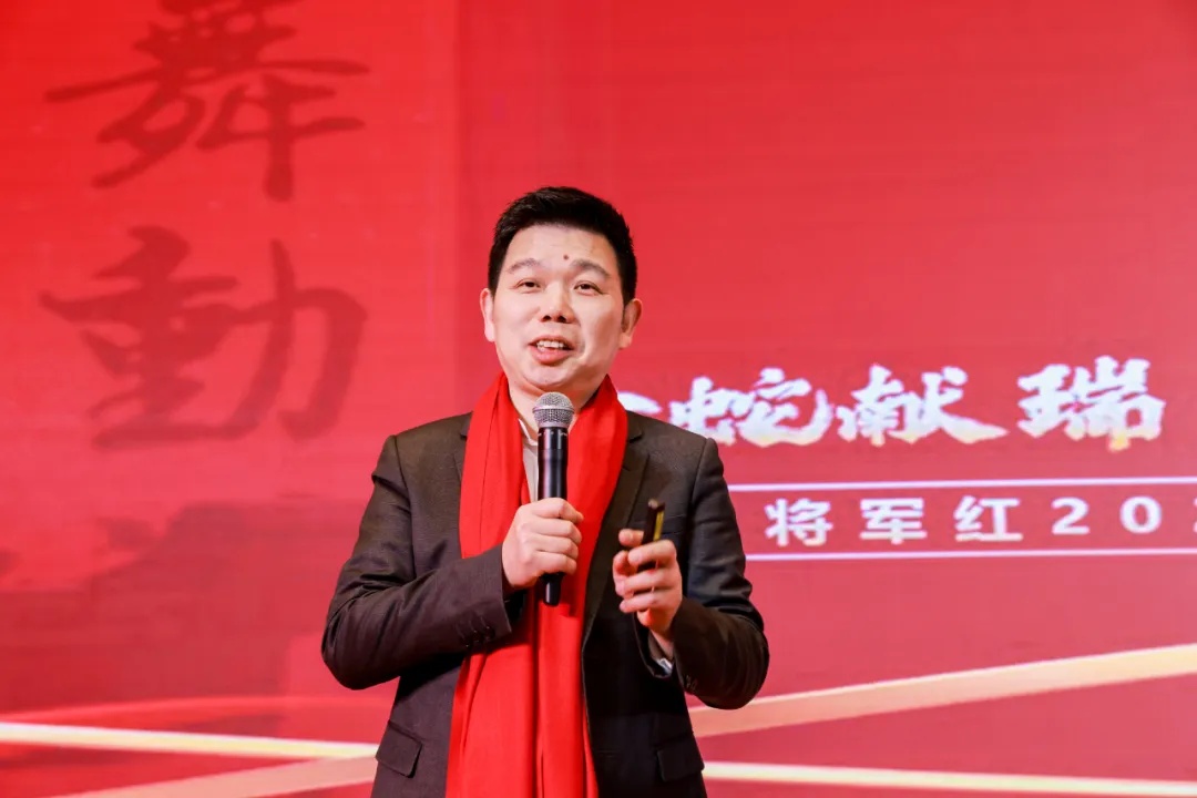 将军红酿酒有限公司董事长付博代表全体将军红的家人,分享过去一年来企业在生产、销售、品牌建设等方面成绩与得失,描绘将军红2025年的宏伟目标和发展蓝图。