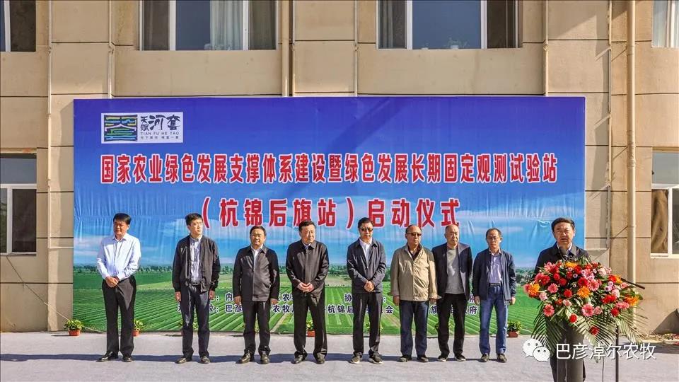 启动仪式上,杭锦后旗政府旗长白岳作表态发言,与会领导共同为绿色发展长期固定观测试验站正式启动揭牌。