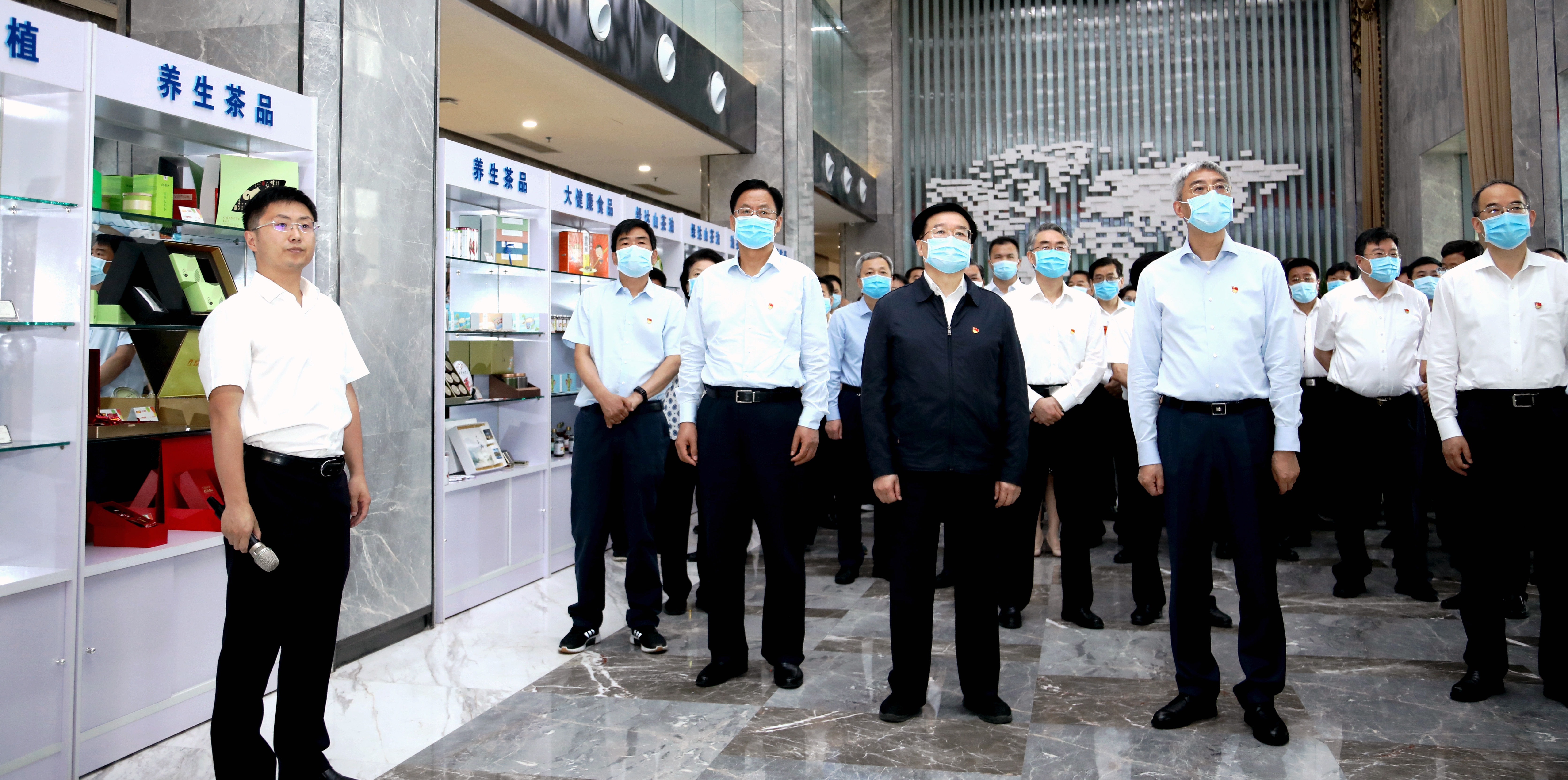 中国食品安全网讯(王海峰 刘振林 记者 郑晓伟) 2020年6月5日,加快河南大别山革命老区振兴发展工作会议在信阳市新县召开。会议开始前,河南省委书记王国生、省长尹弘、省政协主席刘伟及多位河南省四大班子领导,河南省大别山革命老区有关市县主要负责同志,省委有关部委、省直有关单位主要负责同志来到羚锐制药百亿贴膏剂厂区进行调研。