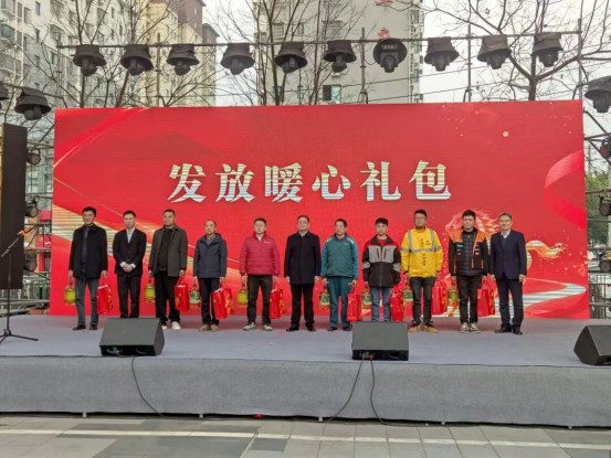 慰问物资发放现场暖意融融,“暖心礼包”承载深切关怀,内含保温杯、保暖手套、护膝等防寒装备及米、油等生活物资,精准覆盖工作与起居需求。“寒冬里的关怀既暖心又提劲,让我们真切感受到城市归属感。”一位配送员接过礼包时说道。