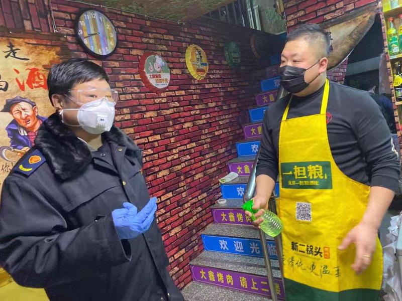 一是停止大型超市经营活动,对辖区1家大型超市进行公告关停,并引导其线上经营,通过配送货,服务辖区百姓。二是停止机关企事业单位食堂集体就餐,可选择分餐配送方式或简餐,进出食堂人员必须戴口罩,错时就餐,避免面对面就餐;要建立统一餐厨垃圾投放点、餐具洗消点,疫情期间每天不少于2次集中消毒,严格执行食品安全操作规范要求。三是停止餐饮业户经营,对辖区早餐店、饭店、烧烤店等餐饮业户加强日常巡查公告,严禁疫情期间对外经营,线上销售要严格食品安全操作规范,特别加强了对夜间烧烤店经营行为的排查整治。