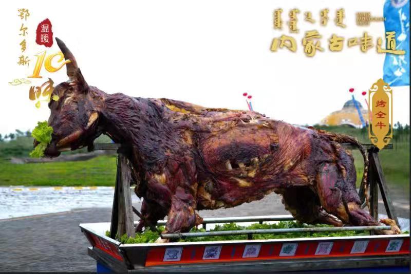鸿运牛头是鄂尔多斯招待贵宾的吉祥盛宴。牛皮软糯、胶质丰厚;牛脸细嫩,肥瘦相宜;牛肉筋道,耐嚼入味。牛鼻上的肉要献给最尊贵的客人,寓意牛气冲天!