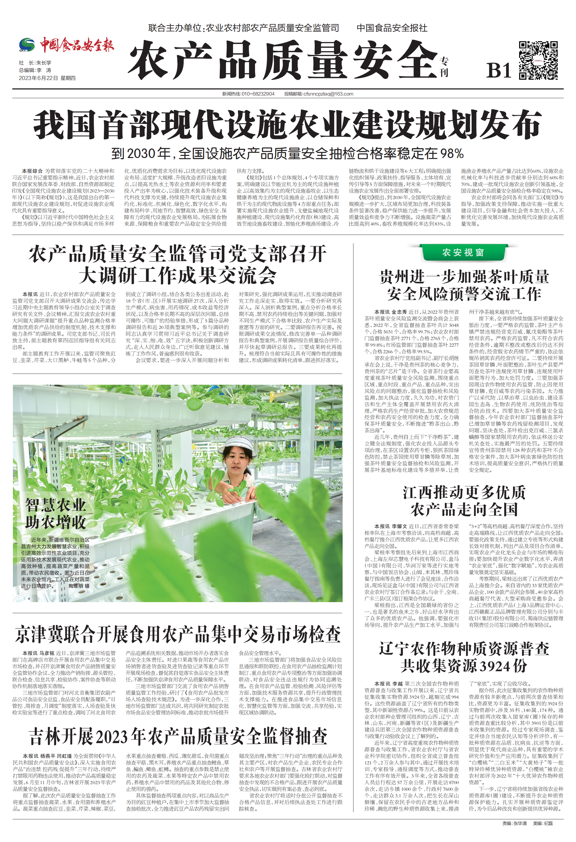 中国食品安全报第3782期农产品质量安全专刊版面B1
